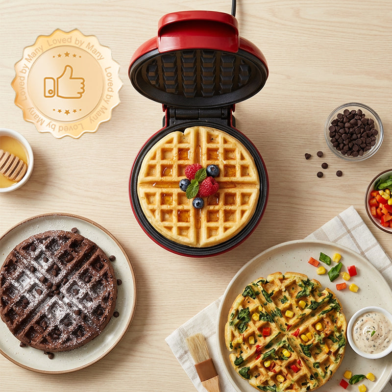 COMPACT & PORTABLE DESIGN - Its small footprint makes it perfect for any kitchen, apartment, dorm room, or even for travel. Enjoy delicious homemade waffles wherever you go without sacrificing counter or storage space.