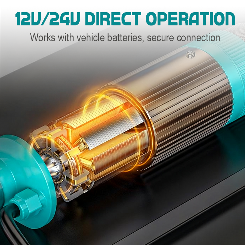 PLUG IN, POWER UP, PUMP - Runs straight off car or truck batteries. Heavy-gauge copper clips grip tight. The lock-on switch lets you pump hands-free. With a 3m cable, reach is never an issue.