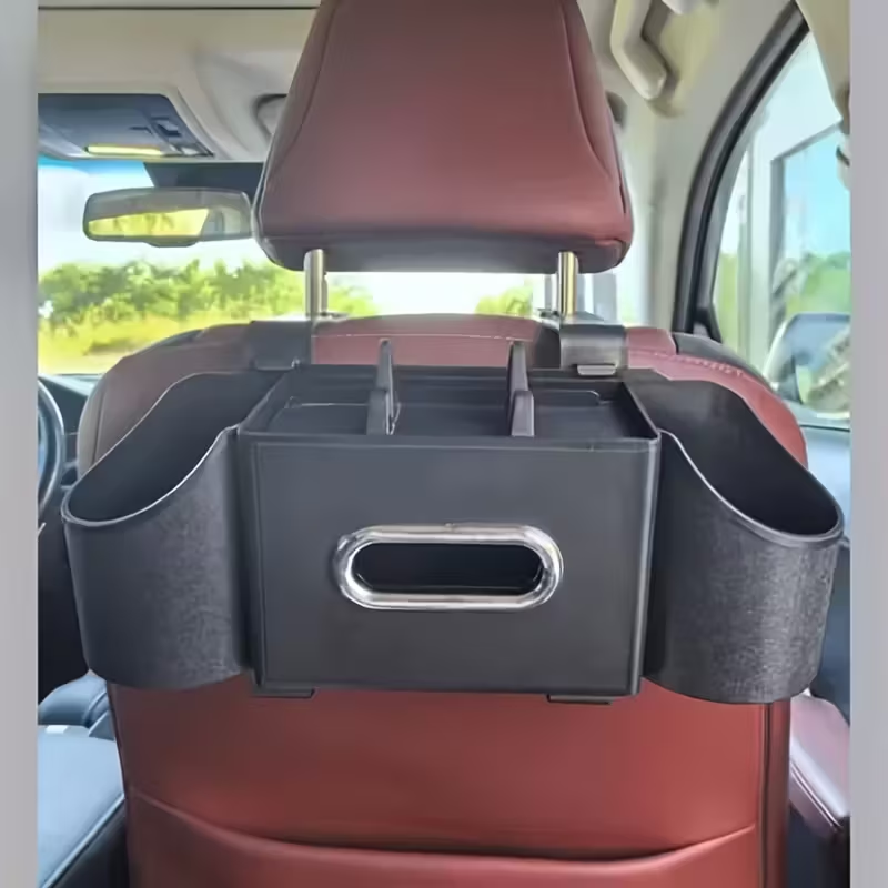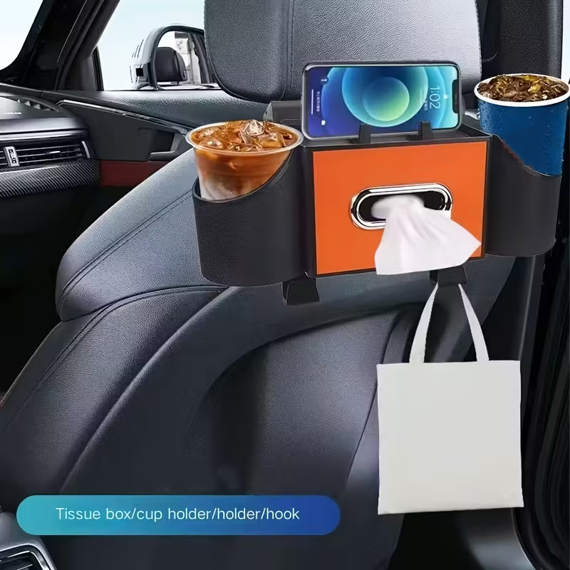 4-IN-1 MULTIFUNCTIONAL DESIGN - Keep your car's interior perfectly organized. This unit combines a tissue dispenser, dual cup holders, a phone stand, and bag hooks, placing all your essentials neatly within easy reach for passengers.