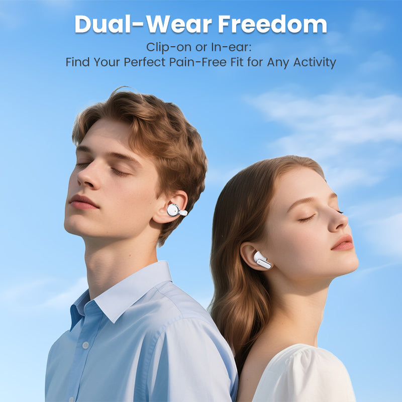 DUAL-STYLE EARBUDS IN ONE CASE: Get the best of both worlds with in-ear and ear-clip designs. Choose the perfect fit for any activity, whether you need secure isolation for workouts or open comfort for casual listening.