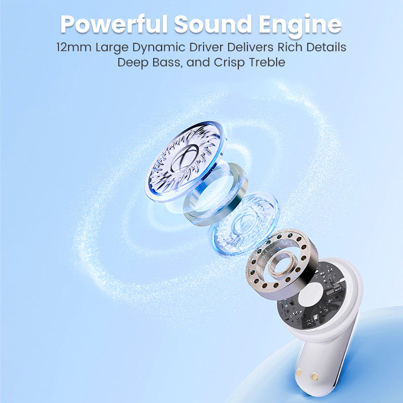 IMMERSIVE STEREO SOUND: Hear every detail with the large 12mm dynamic drivers. This setup delivers rich bass, crisp highs, and a wide soundstage, creating an immersive audio experience for all your music and media.
